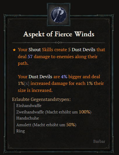- Eure Ruffertigkeiten erschaffen 3 Staubteufel, die Gegnern in ihrem Weg Schaden zufügen.