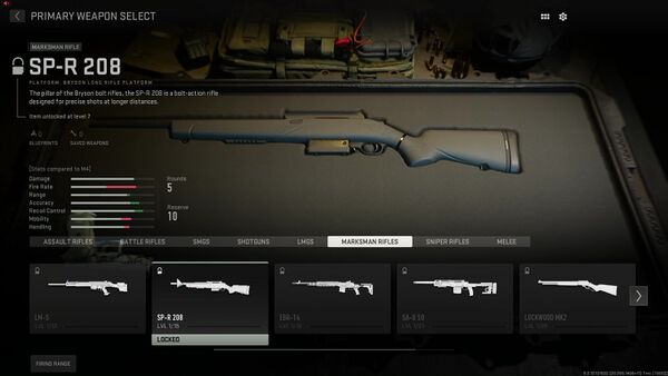 Three M24 SWS variants appear in the game as separate weapons. The first one is the “SP-R 208”, chambered in 7.62x51mm NATO, returning from Modern Warfare, classified as a marksman rifle.