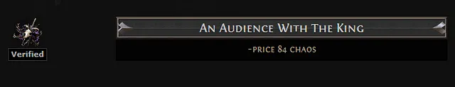 The price of An Audience With The King is about 84 Chaos Orbs.