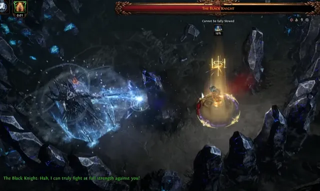 The Black Knight is a formidable and unique boss encountered in the Settlers league of Path of Exile. Known for his powerful cold and physical attacks, this boss guards the Starfall Crater, a dangerous area filled with Verisium Outcrops. Facing The Black Knight is a challenging experience that will test your skill and preparation.