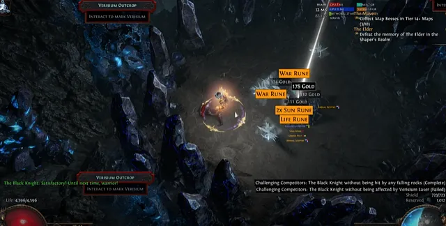 After defeating The Black Knight, you will be rewarded with several runes, and five Verisium Outcrops in the Starfall Crater will become interactable. These outcrops do not spawn monsters and cannot be channeled, but they are valuable resources to collect. Additionally, The Black Knight has a chance to drop Svalinn, a unique item highly sought after by players.